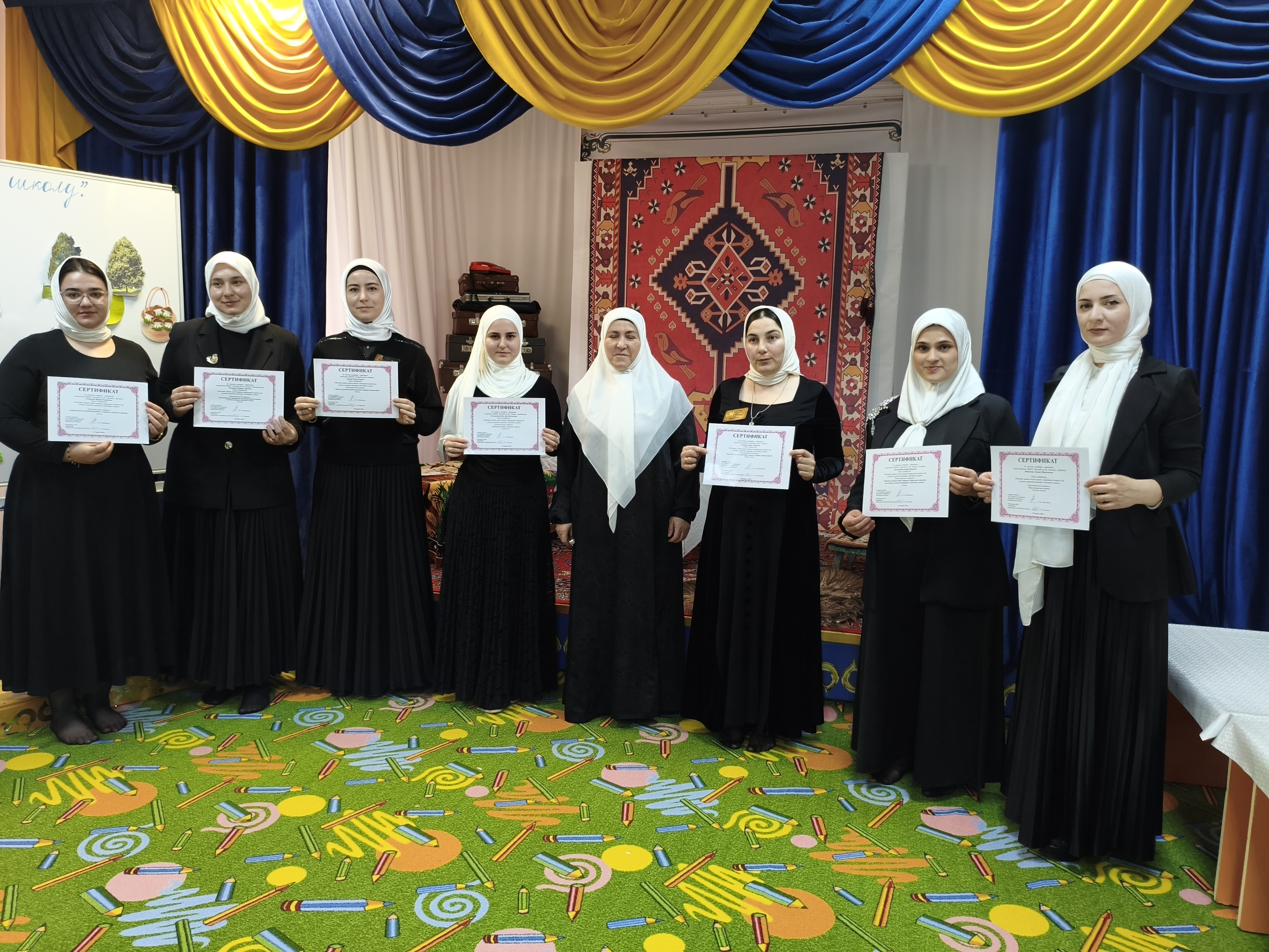 Реализуемые образовательные программы: Основная образовательная программа дошкольного образования, составленная в соответствии с Федеральной образовательной программой дошкольного образования Также реализуется адаптированная основная общеобразовательная программа дошкольного образования для воспитанников с ОВЗ. Обучение и воспитание ведется на русском и чеченском языках.