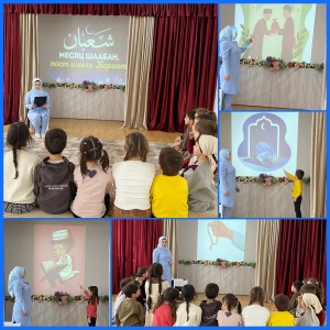 Социальный педагог Х. М. Селимбаева провела в подготовительной группе "Капелька" тематическую беседу на тему: «Священный месяц Шаабан». Все хорошие деяния, совершаемые в этом месяце, увеличиваются до 700 раз и поднимаются к небесам безо всяких ...