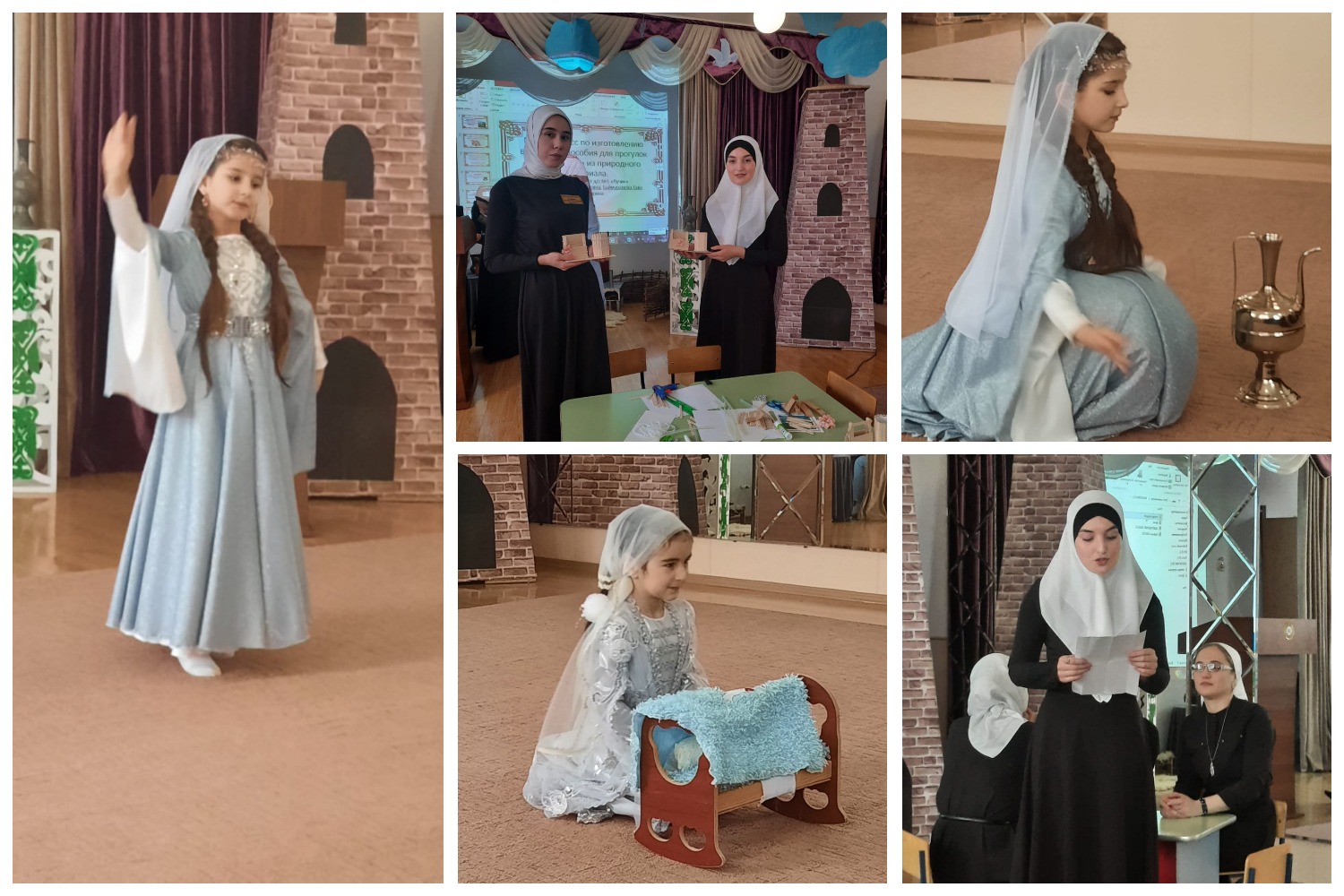 В семинаре приняли участие педагоги со всех детских садов района. Открыли мероприятие воспитанники ДОУ с музыкальными номерами, представляющими красоту и своеобразие культуры и традиций чеченского народа. Наш воспитатель Газалиева Аминат Ташухажиевна представила вниманию гостей семинара открытый просмотр ООД в старшей группе на тему: «Куьйгаш- вайн г1оьнчий». Воспитатель МБДОУ «Детский сад № 1 «Радуга» Батаева Лиза Ахмедовна выступила с докладом-презентацией из опыта работы «Эффективность использования регионального компонента в ДОУ».Воспитатель МБДОУ «Детский сад № 15 «Машар» Эстамирова Аза Замидовна представила авторский мастер-класс «Чтение сказки «Карчолаг» на чеченском языке. Очень познавательную и интересную деловую игру «Бовза беза нохчийн мотт» провела с педагогами воспитатель детского сада № 13 «Ирс» Несирханова Зайнап Умаровна. Выносное пособие для прогулок «Органайзер» из природного материала изготовили на своем мастер-классе воспитатели детского сада №1 «Лучик» с. Комсомольское Бачарова Зулихан Рамазановна, Баймурадова Хава Магомедовна. Главный специалист МУ «УДО Гудермесского муниципального района» Абдрахманова Жарадат Минкаиловна выступила с презентацией парциальной образовательной программы по чеченскому языку «Сан къоман хазна».