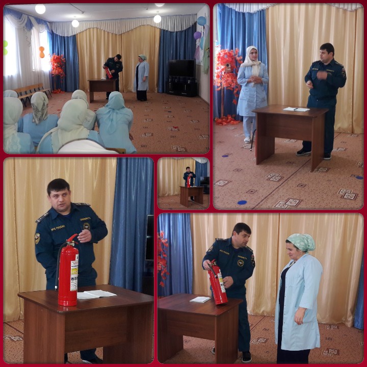 01.12.2017В ходе проведения плановой проверки соблюдения требований пожарной безопасности в ДОУ гос.инспектор ОНД и ПР по Гудермесскому району Рамзан Халимов провел с сотрудниками ДОУ инструктаж по пожарной безопасности. Пожарная безопасность ДОУ находится под постоянным контролем администрации детского сада,педагогический персонал в обязательном порядке проводит с детьми инструктажи, познавательные беседы по правилам пожарной безопасности.